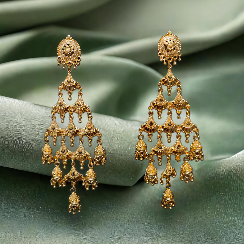 Comprar conjunto de pendientes con diseño tradicional 22CT chapado en oro estilo Jhumka pendientes joyería para mujer desgaste