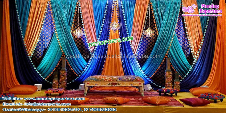 Comprar fondos bordados para decoración de Mehandi, telón de fondo para boda india, cortinas bordadas