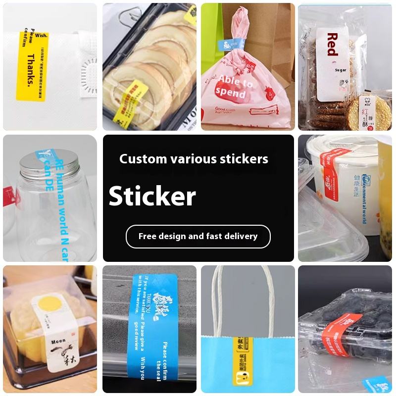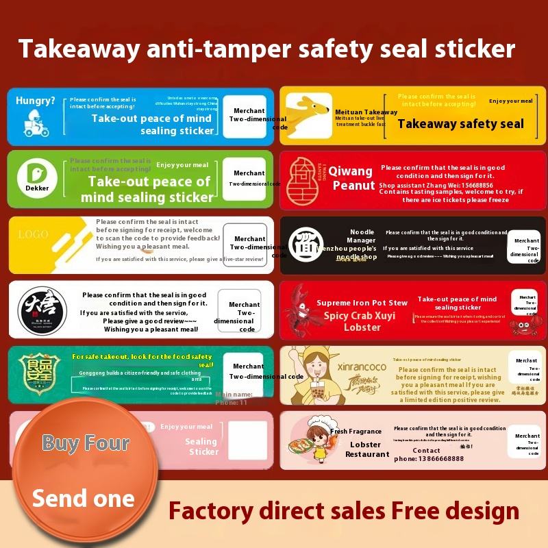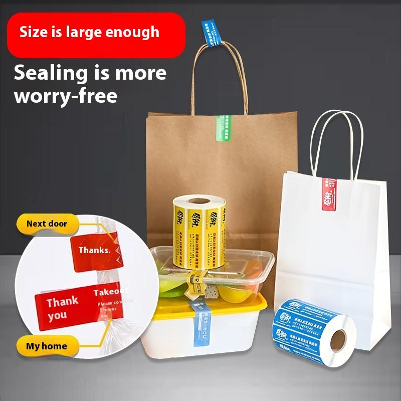 Compre cuatro y llévese uno gratis Serigrafía Anti-apertura Anti-fuga Etiqueta de sellado para llevar Etiqueta de seguridad alimentaria para bolsas de papel de pizza