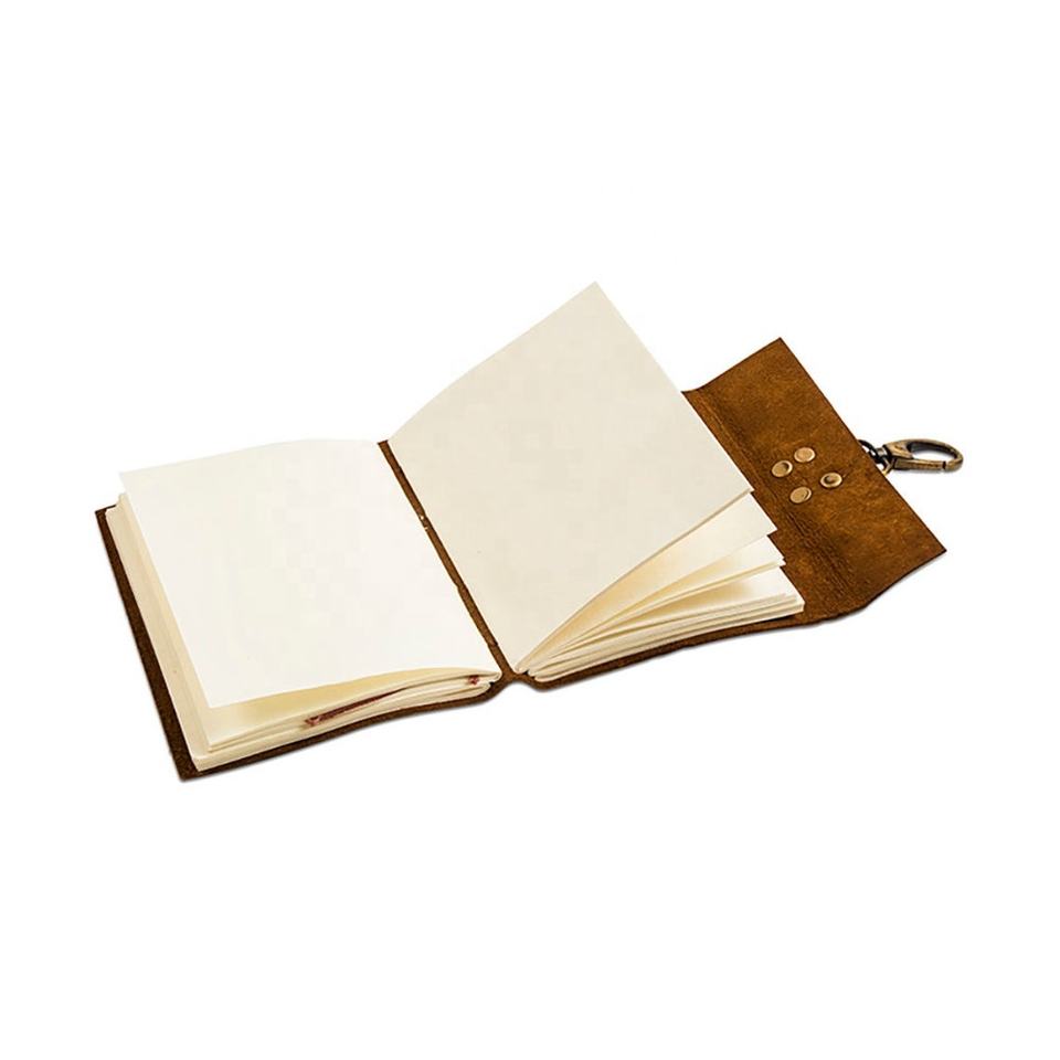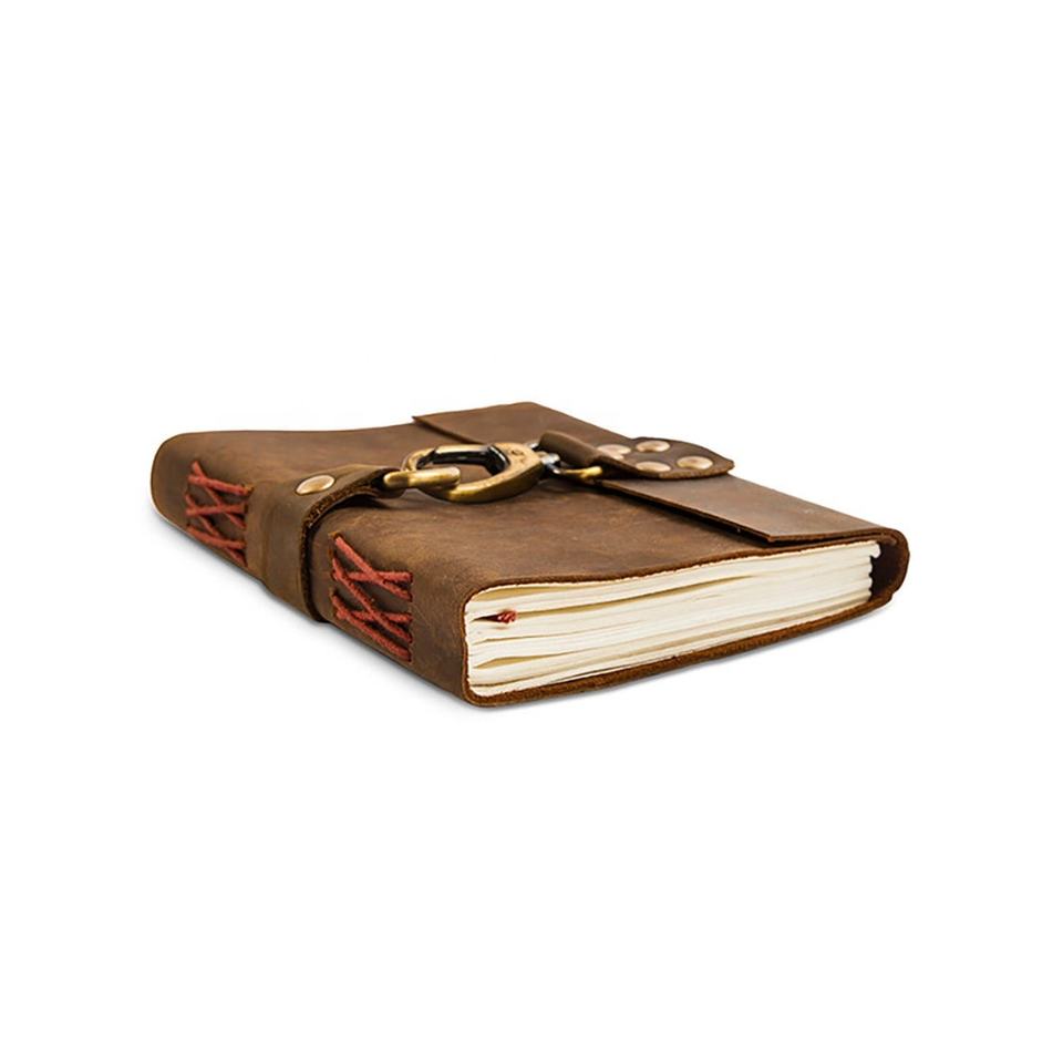 Compre diario de cuero de papel blanco de algodón personalizado hecho a mano con cerradura de gancho de latón cuaderno de carpeta de presupuesto con encuadernación de lácteos de cuero genuino