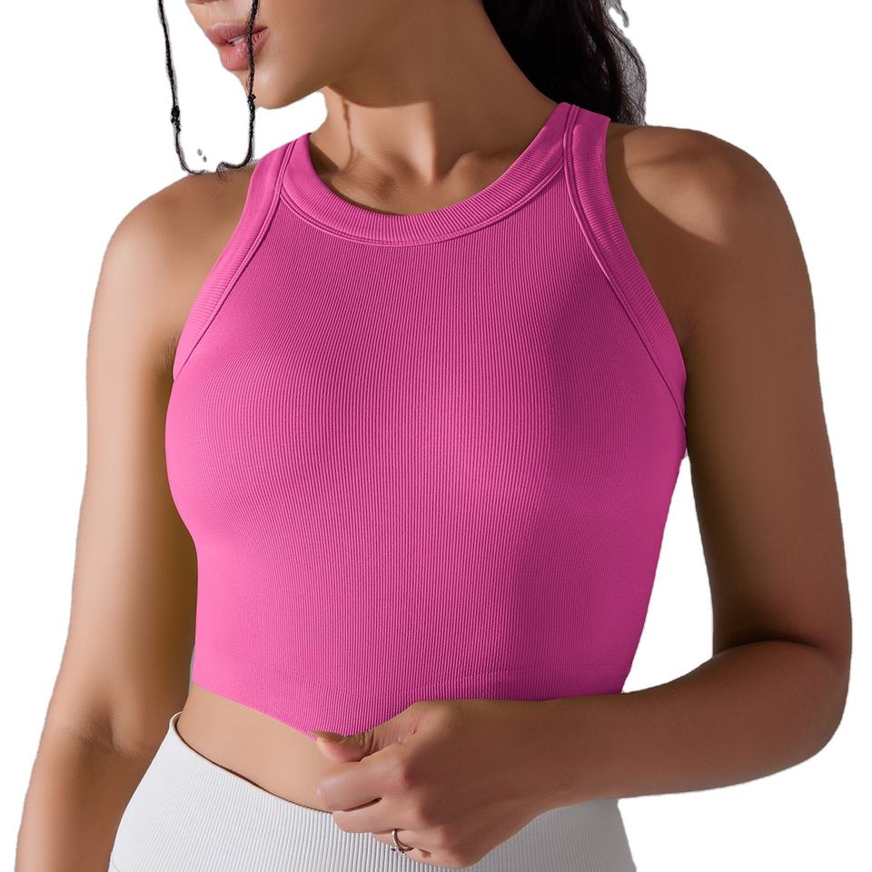 Venta caliente de alta calidad acanalado Yoga chaleco personalizado deportes Jogging Crop Top Fitness Yoga Wear para mujeres Casual Tank Tops de punto