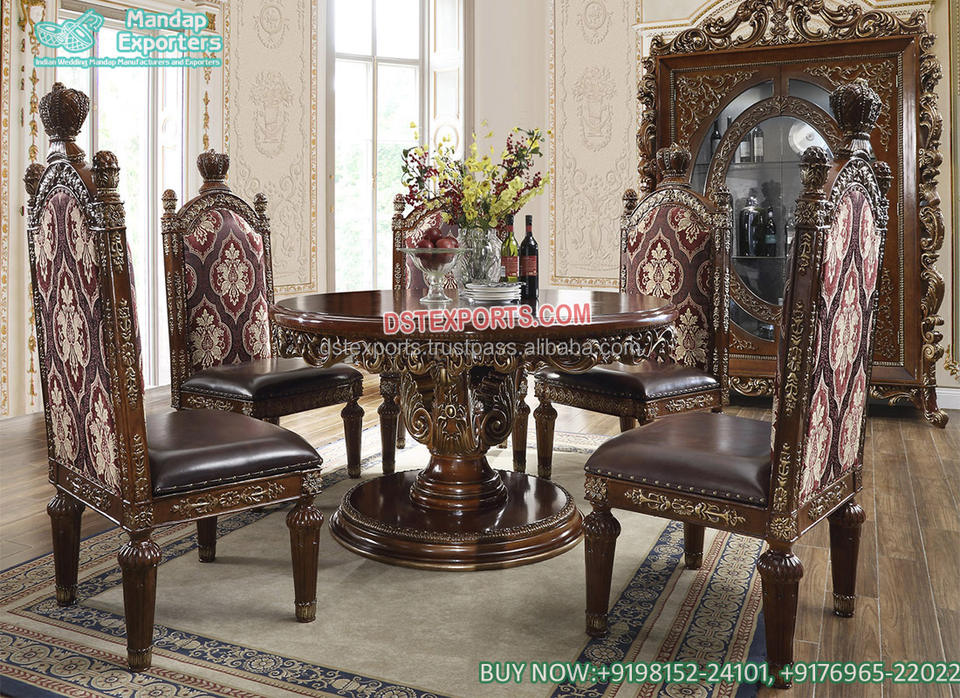 Compre un Juego de Mesa y Sillas de Comedor Estilo Italiano, Lujoso Juego de Mesa de Comedor de Madera de Teca para 10 Personas, Nuevo Diseño, Mesa de Comedor Tallada a Mano