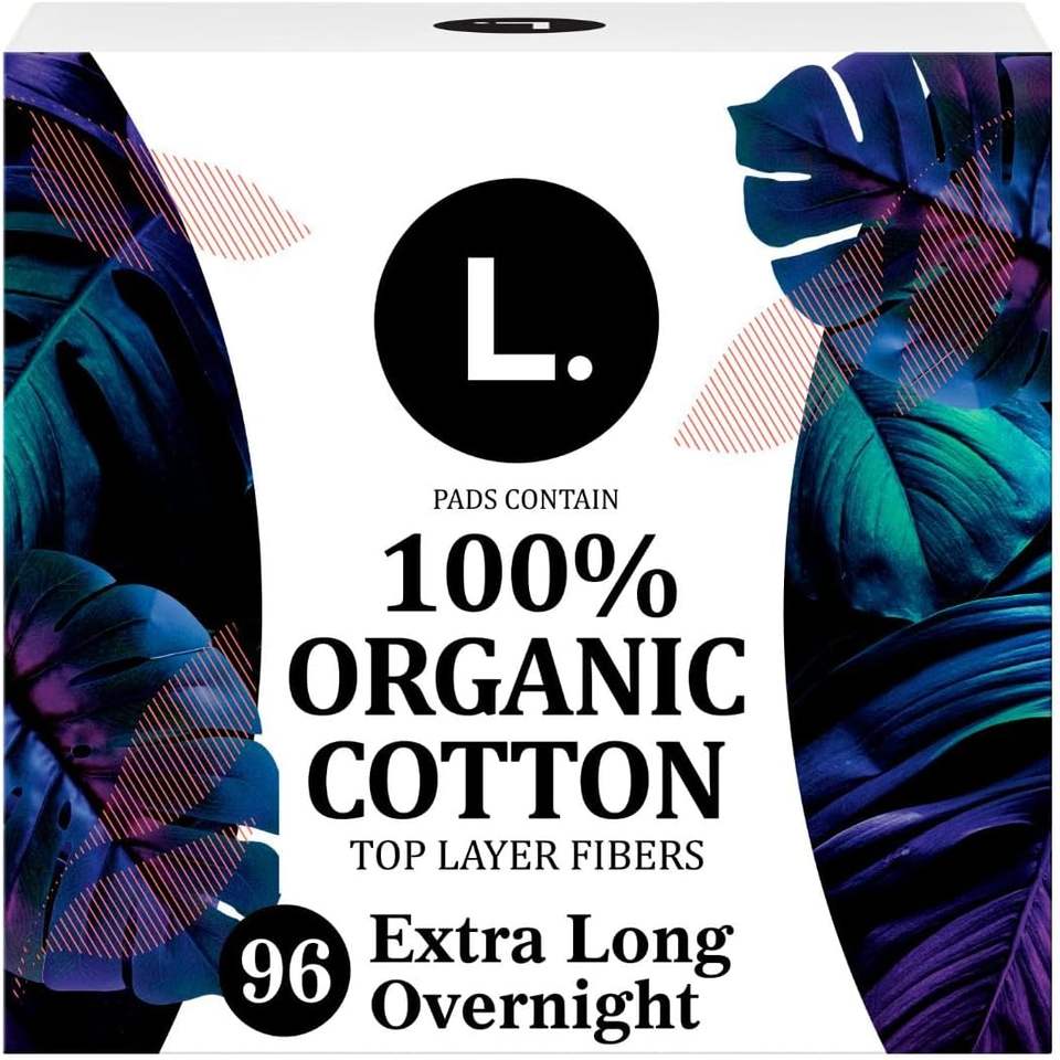 Compre Toallas Sanitarias Extra Largas de Algodón Orgánico L. para Mujer, Sin Perfume, con Alas, Transpirables, Absorbentes para la Noche, Paquete de 56