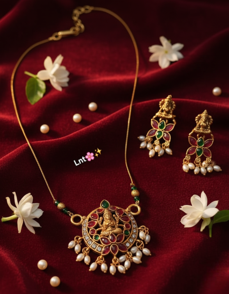 Products Name:Traditional Temple Necklace Jewellery Set with Earrings