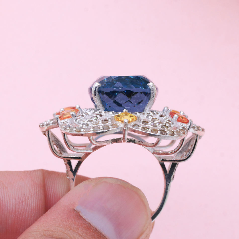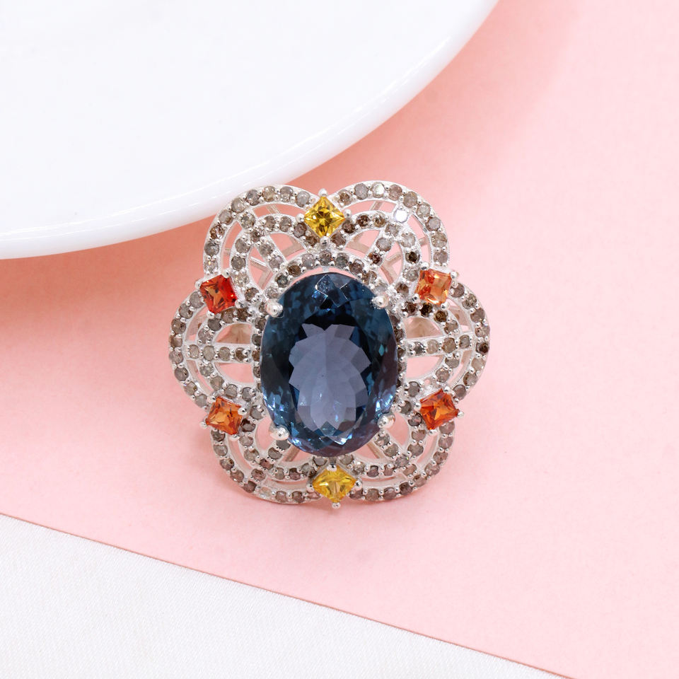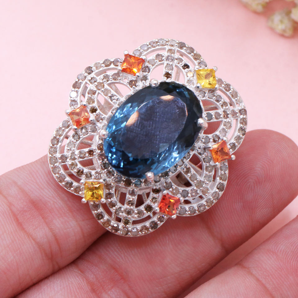 Nombre del producto:Topacio azul natural de Londres y anillo de diamante de la piedra preciosa del zafiro multi