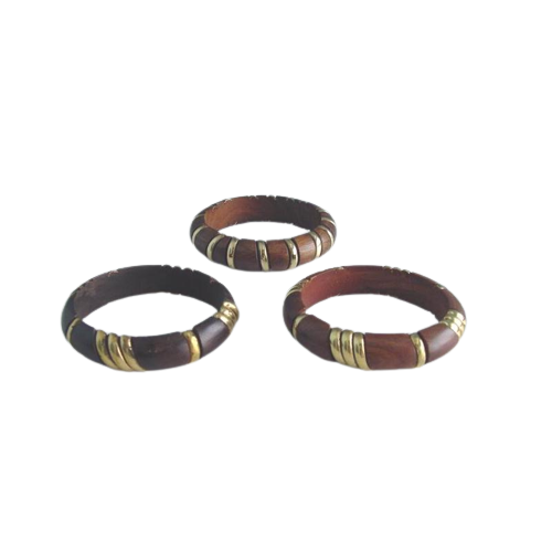 Sheesham-brazaletes de madera Natural con anillo Circular de latón para mujer, brazaletes hechos a mano