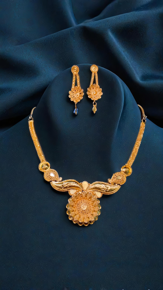 Comprar conjunto de collar y pendientes con chapado en oro de 22K de diseño premium para mujer, conjunto de collar y pendientes, joyería