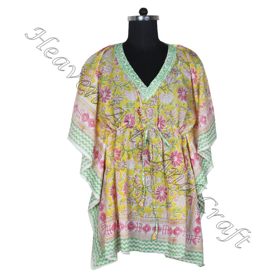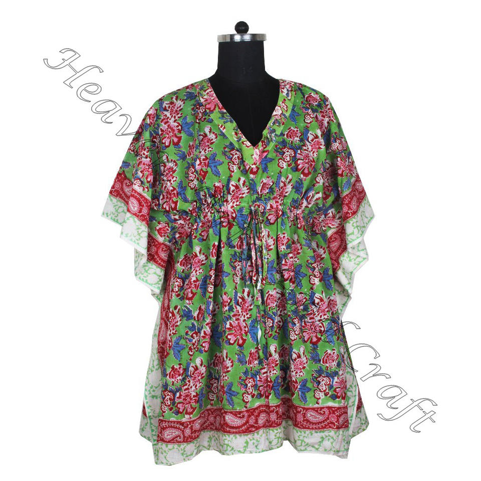 Comprar nuevo patrón de bloque de impresión de las mujeres Kaftan corto vestido de noche con tamaño personalizado para la venta por los exportadores indios