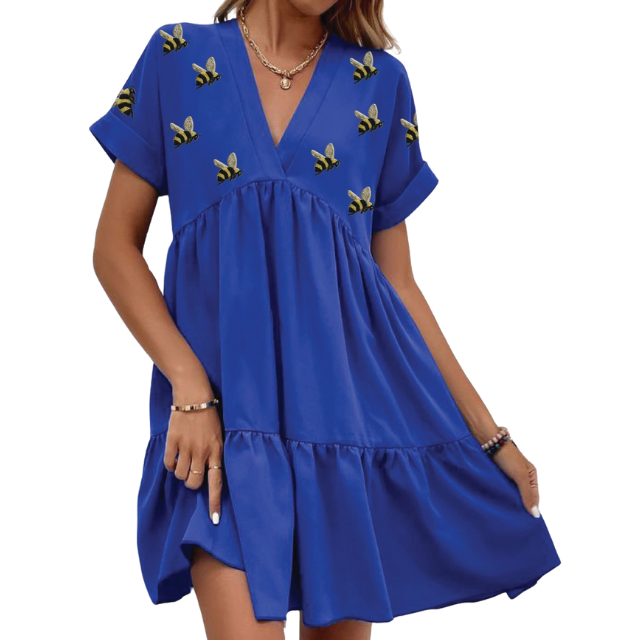 Comprar nueva tendencia diseños únicos personalizado Hornet abejas fuera del hombro con lentejuelas cosidas a mano abejas parches vestido vestidos casuales para la venta