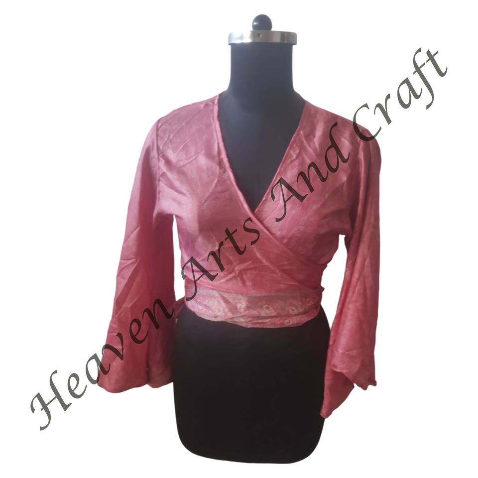 Número de Modelo:Recycle Sari Silk Tie Tops Bell Sleeves