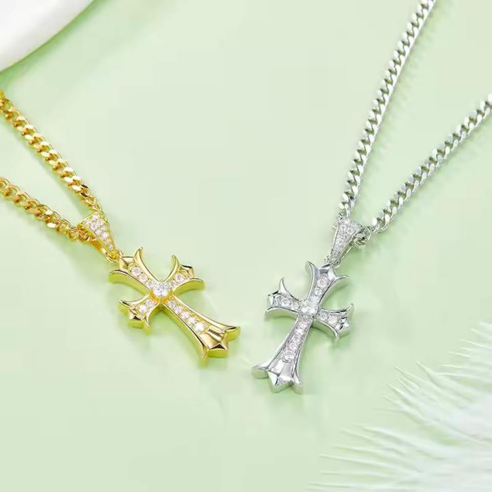 Compre en Línea en India un Collar con Colgante de Cruz de Diamantes con Baño de Rodio y Oro Rosa, Estilo Hip Hop, para Compromiso