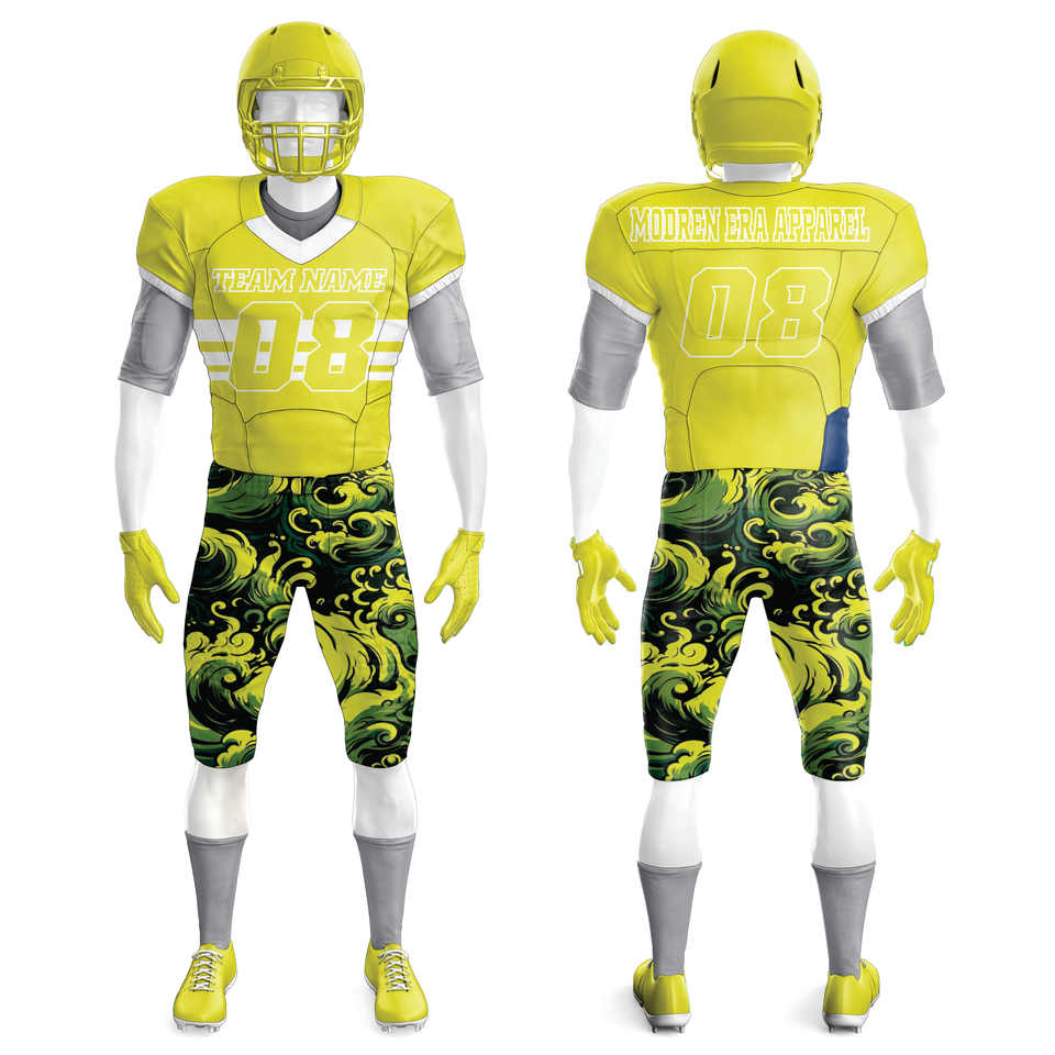 Comprar ropa deportiva sublimada diseño personalizado verde Tackle sarga juvenil fútbol americano Jersey equipo corto conjuntos de uniformes en Pakistán