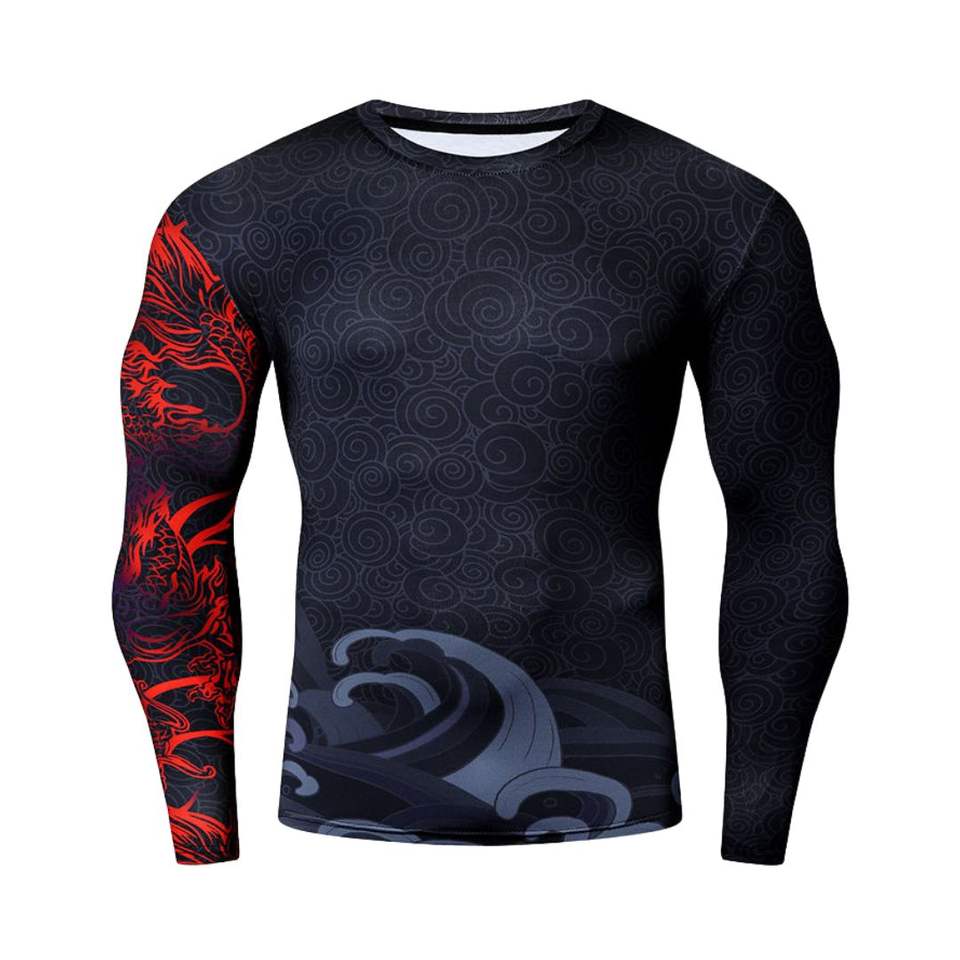 Comprar ropa deportiva personalizada camisas de compresión de manga larga sublimada tela de poliéster hombres entrenamiento Fitness gimnasio camisa de compresión