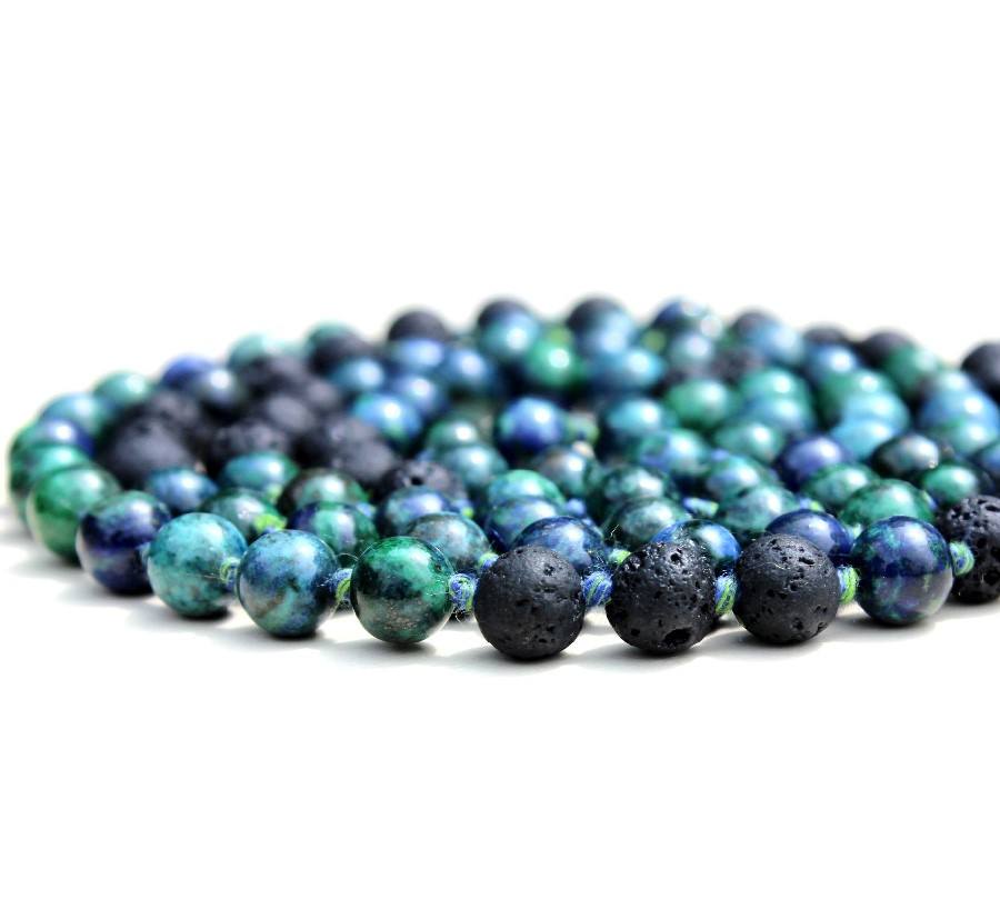 Compre Pulsera de Primera Calidad con Cuentas de Crisocola, Azurita y Lava, Joyería de Yoga, Collares de Cuentas Mala de 108 Nudos, 6mm, Hechos a Mano, Estilo Bohemio Indio