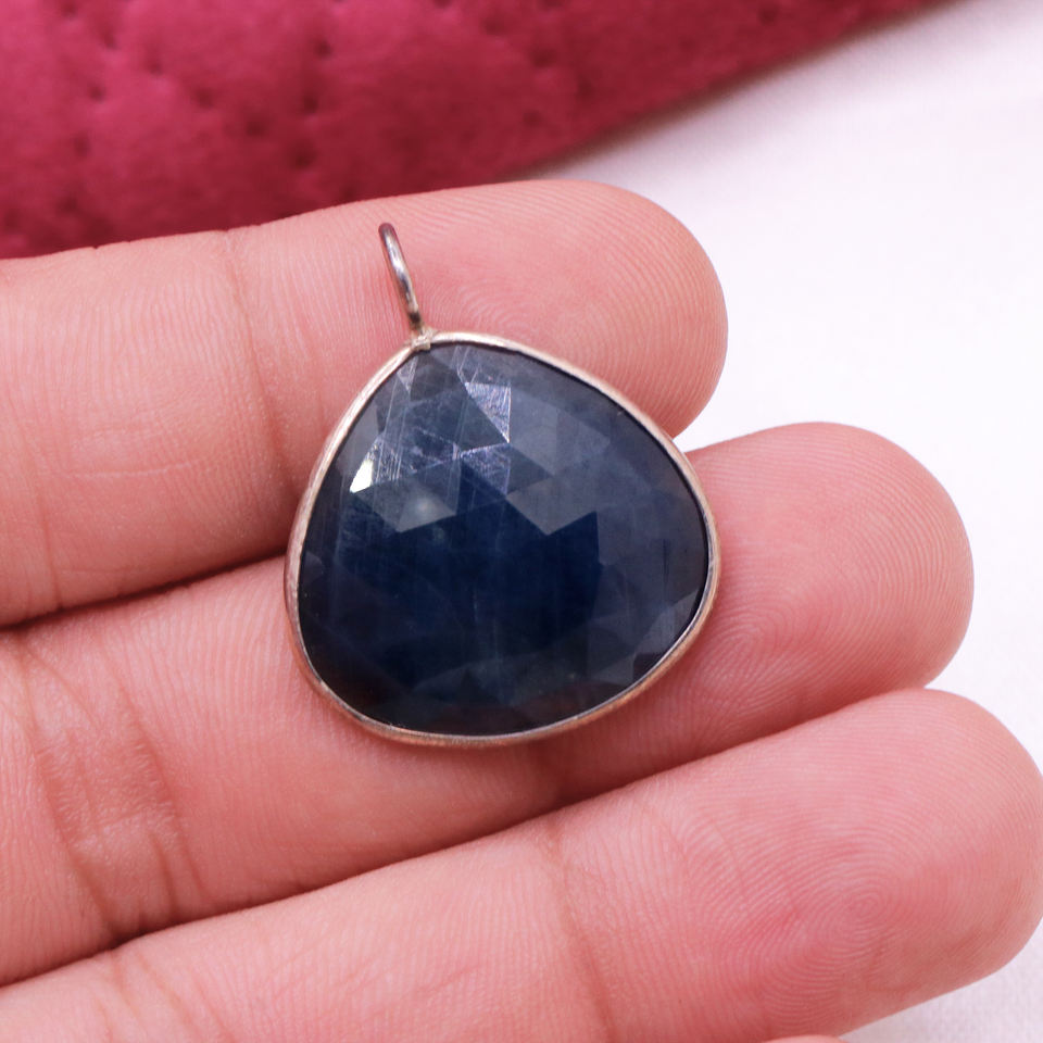 Nombre del elemento:Colgante de piedras preciosas de zafiro azul natural en plata 925