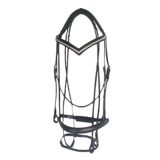 Compre una Brida para Caballo de Cuero Acolchada con Cristales de Dos Filas y Riendas con Cordones | Brida de Doma Premium en Venta por Exportadores