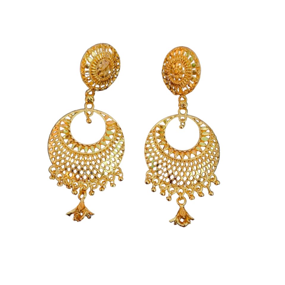 Compre un conjunto de pendientes de diseño único con pendientes Jhumka chapados en oro de 22 quilates, joyería para mujer, ropa de exportadores