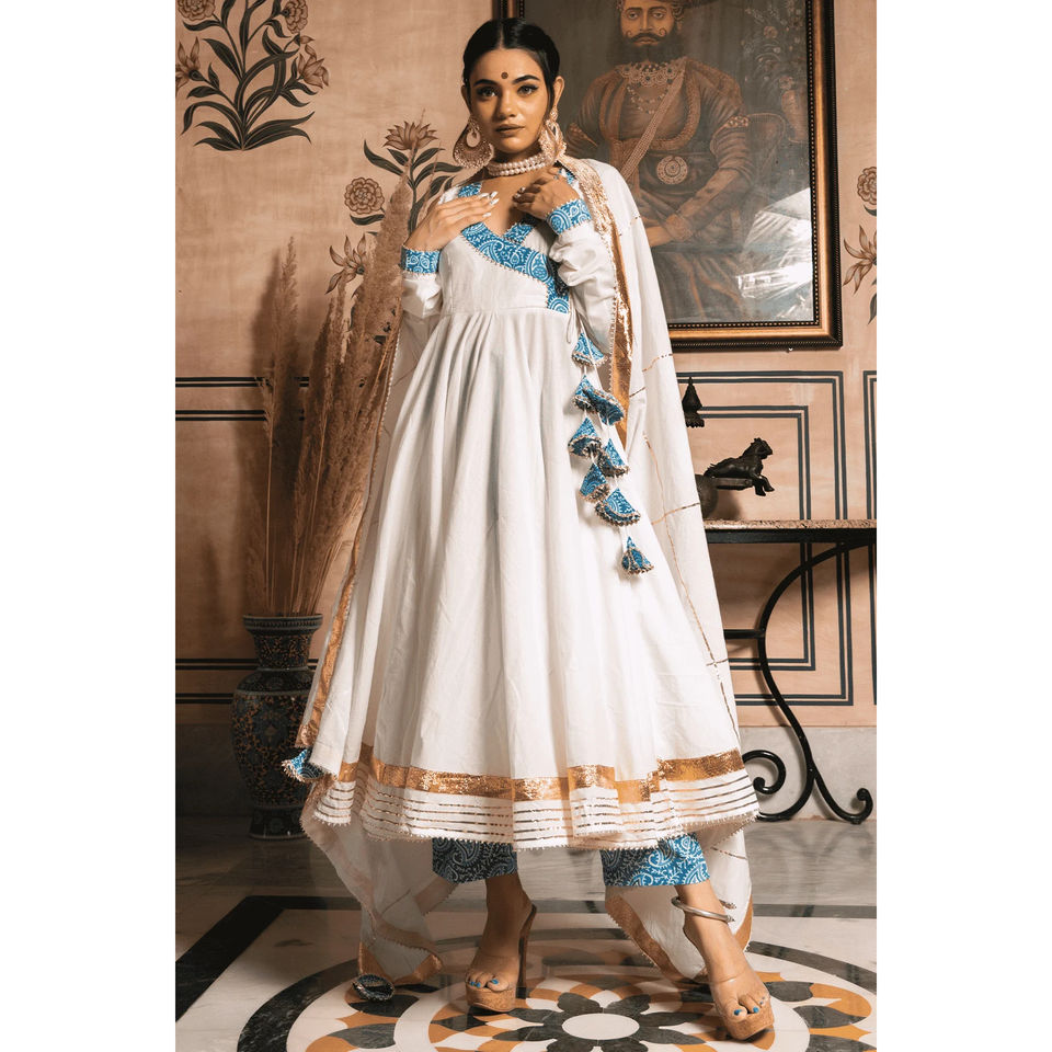 Nombre de los Productos:Conjunto Angrakha de puro algodón Mogra blanco