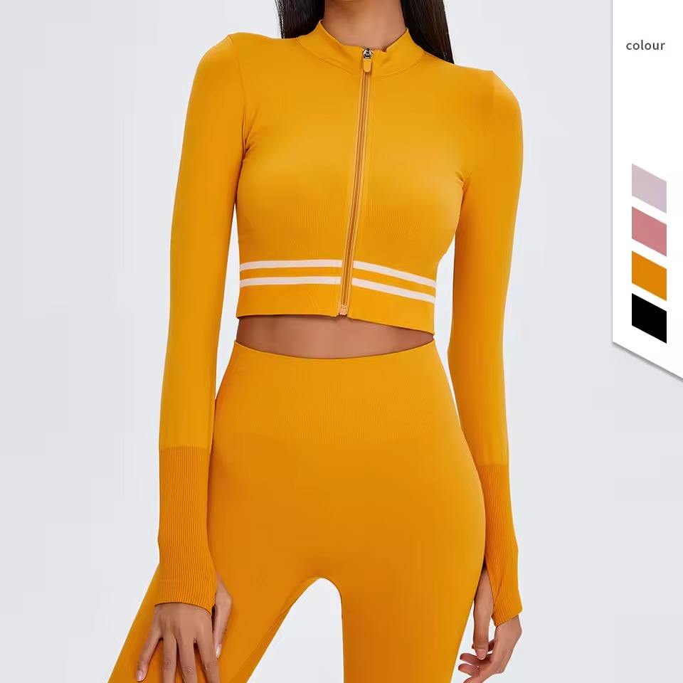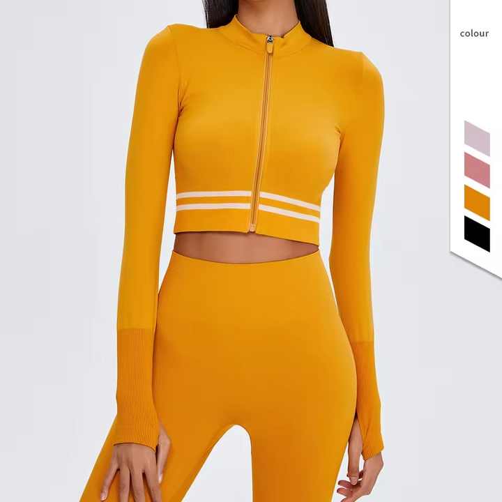 Comprar al por mayor personalizable Spandex acanalado de manga larga recortada chaqueta yoga Top ropa deportiva Imprimir Logo