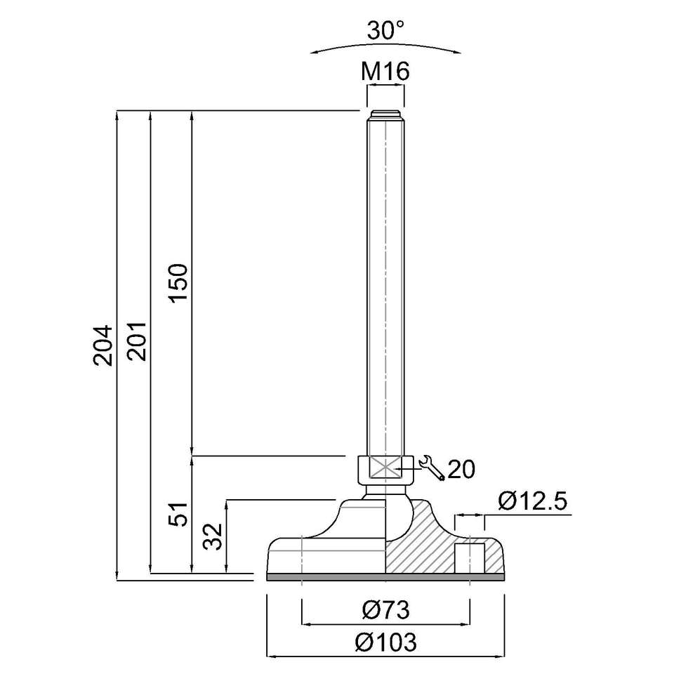 Pie nivelador 10111 en acero galvanizado con base giratoria – soporte ajustable para máquinas industriales