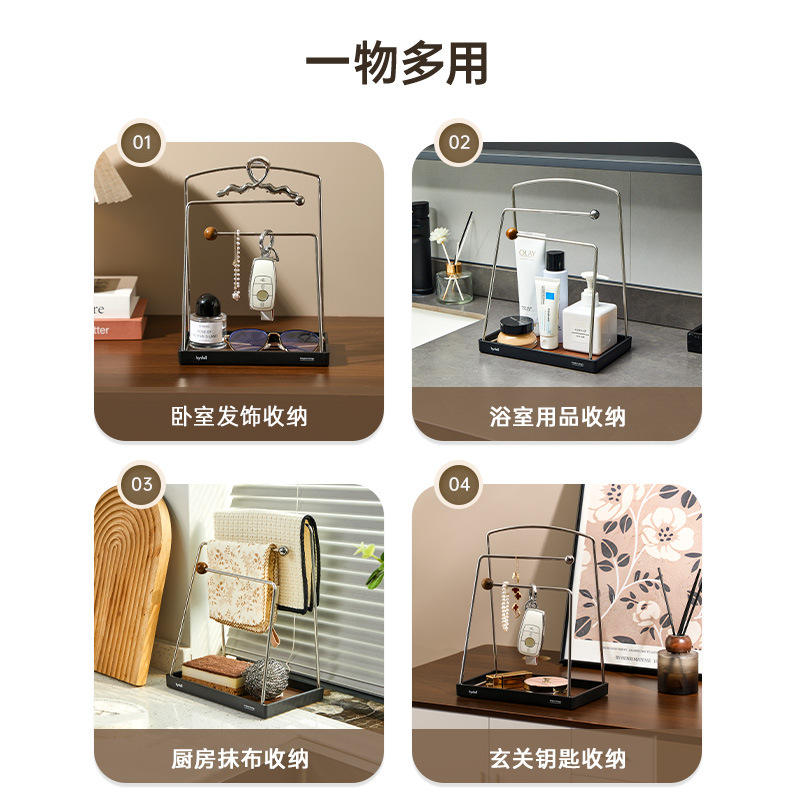 Organizador de Joyas Bydol, Tipo Rectangular, de Madera de Nogal, con Ganchos Múltiples, Decoración para el Hogar