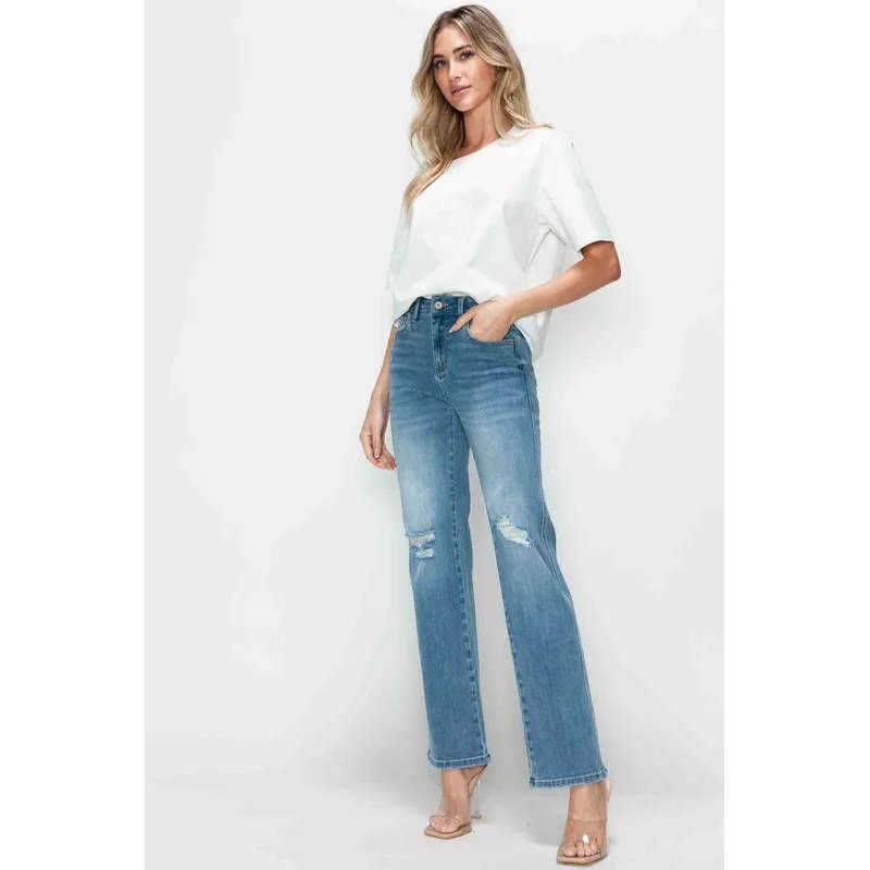 Pantalones Vaqueros Bytos de Cintura Alta, Corte Recto y Acampanado, Estilo Vintage, Transpirables, Diseño Cargo, Talla Completa