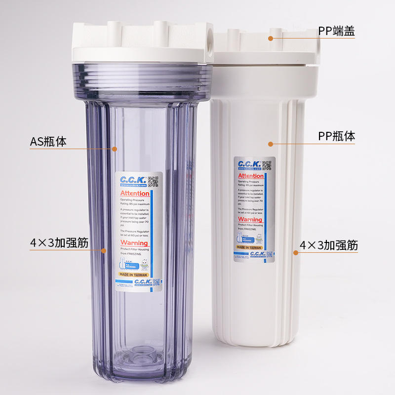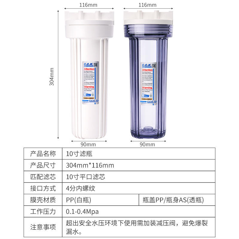 Botella de Filtro de Agua C.C.K de 10 Pulgadas, Prefiltro Universal a Prueba de Explosiones, Blanca Transparente