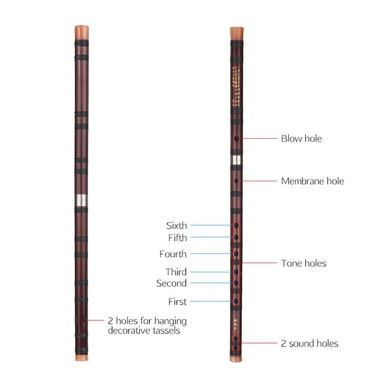Flauta Dizi de Bambú Amargo, Instrumento Tradicional Chino en Clave C con Nudo Chino para Principiantes