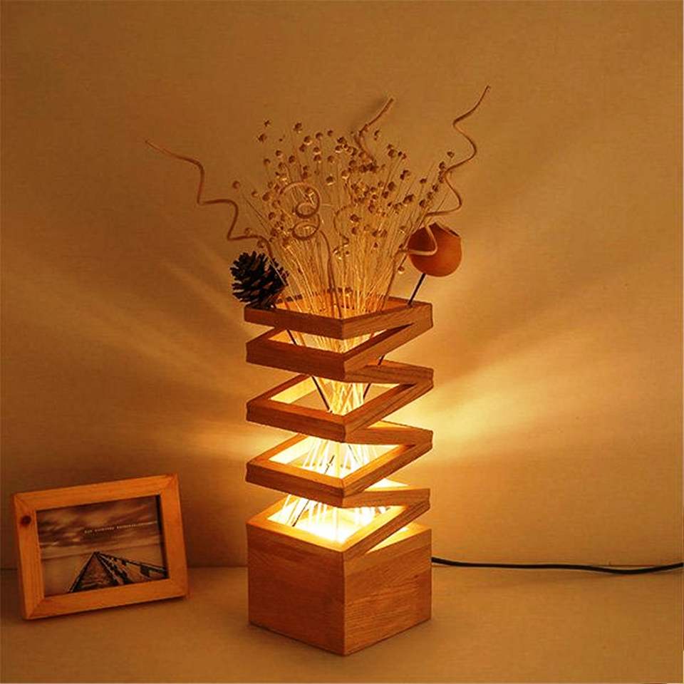 C SHAPED 2 LINE OF LIGHT Lámpara de mesa de madera Lámpara colgante de madera de mango vintage