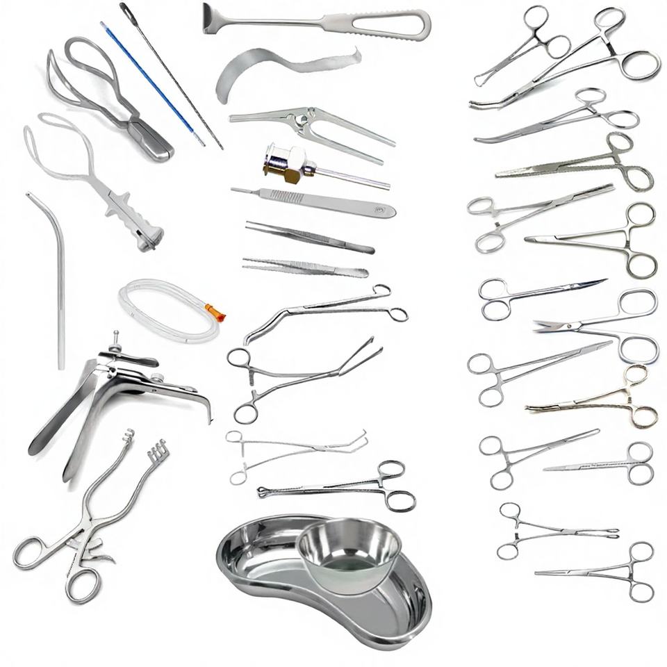 Juego de Instrumentos Quirúrgicos para Cesárea, 77 Piezas, Acero Inoxidable, Manual, Certificado ISO13485, Reutilizable, Juego de Ginecología DDP