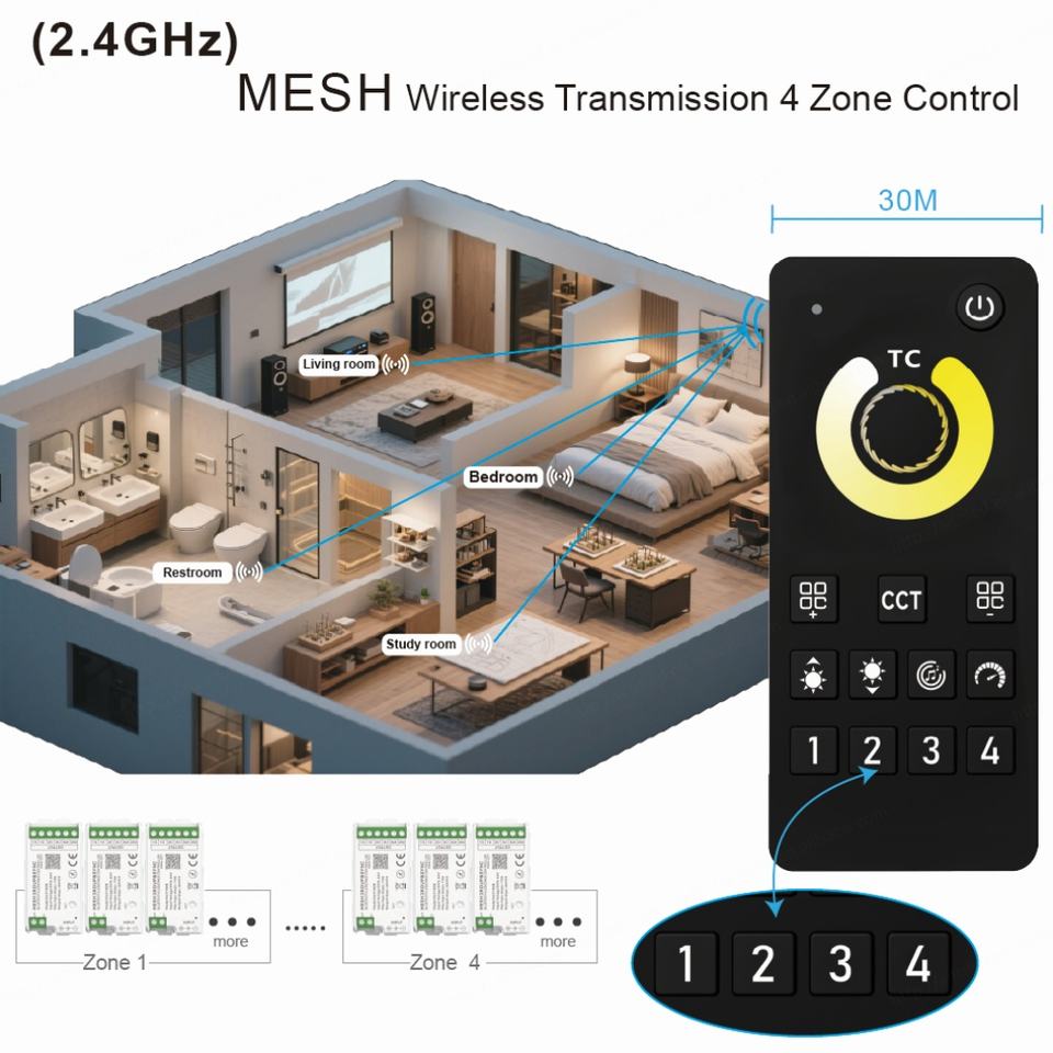 Application:4 Zone MESH Group&Sync Lighting Controller