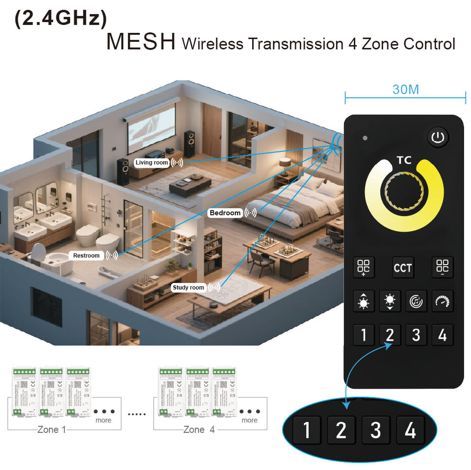 Aplicación:Controlador de iluminación GroupSync MESH de 4 zonas