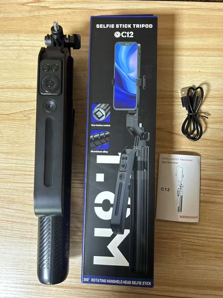 Palo de Selfie Inteligente C12-AI con Seguimiento de Cabeza, Cámara con IA, Seguimiento de Gestos Faciales, Palo de Selfie con Trípode y Movimiento Panorámico-Inclinación