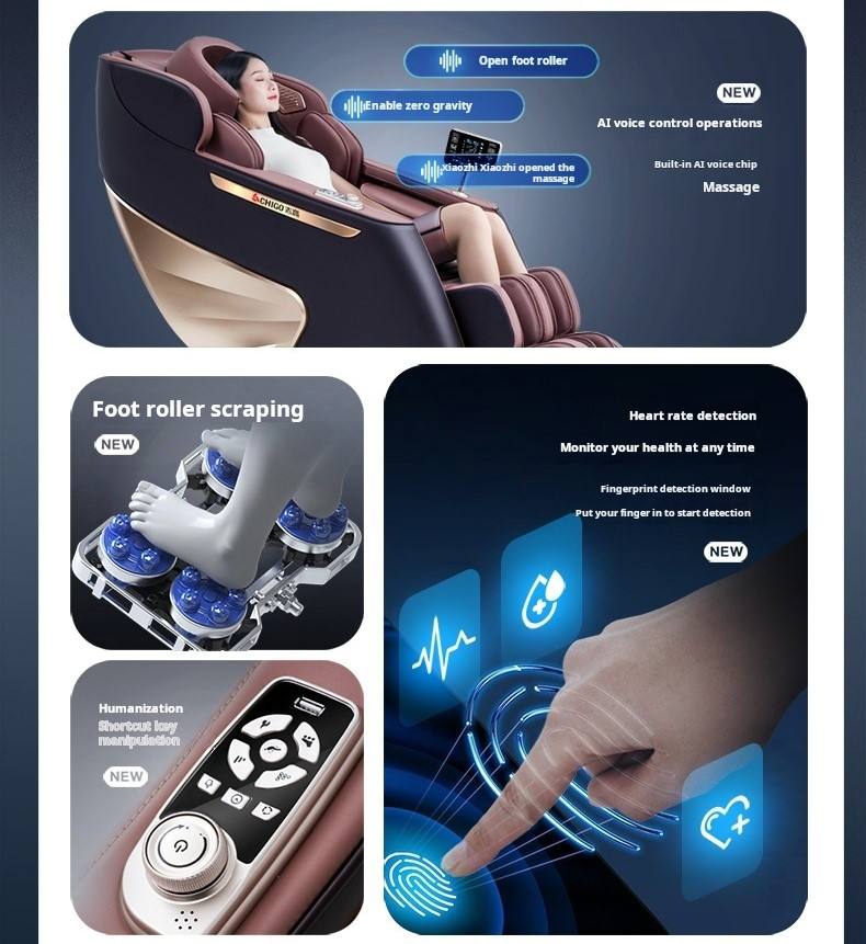 Portátil, gravedad cero, Plegable, Vibración, Masaje del pie, Cuidado de la salud, Respetuoso del medio ambiente, manipulador 4d, compresa caliente, seguimiento sl masaje, control de voz inteligente, gestión remota de computadorasCaracterística