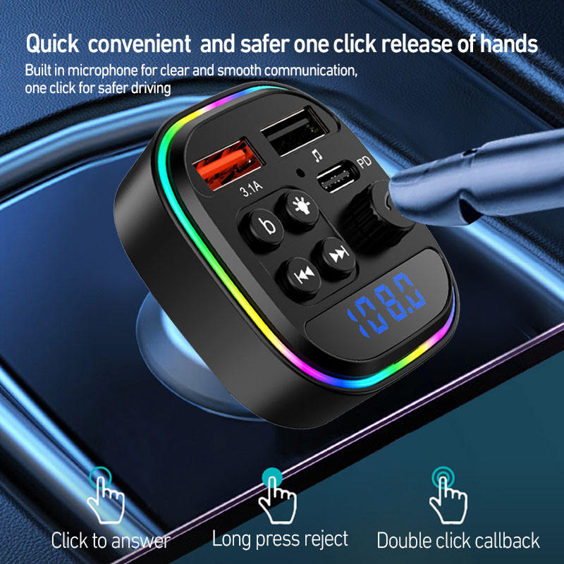 Estéreo, Cargador de coche, La reproducción, Transmisor FM, Manos libres, De carga rápida, Luces coloridas, La pantalla de visualización, Memoria de alimentaciónFunción