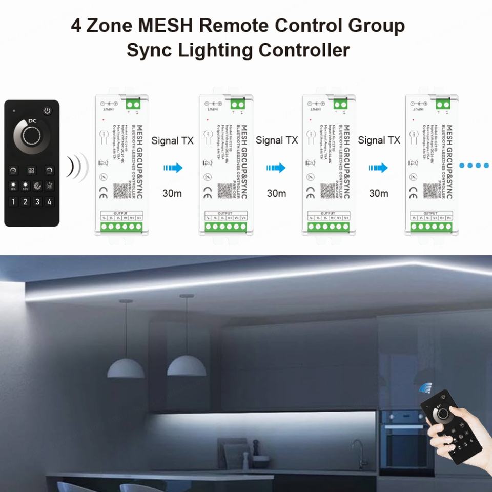 Application:4 Zone MESH Group&Sync Lighting Controller