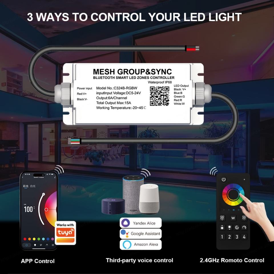 Application:4 Zone MESH Group&Sync Lighting Controller