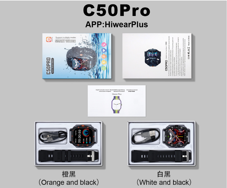 Reloj Inteligente C50 Pro con Navegación GPS, Brújula, Pantalla Táctil, Resistente al Agua, Pantalla AMOLED, Asistente de Voz con IA y Rastreador de Actividad