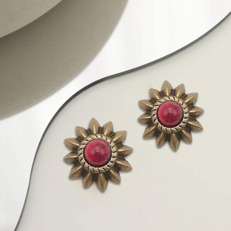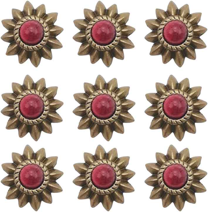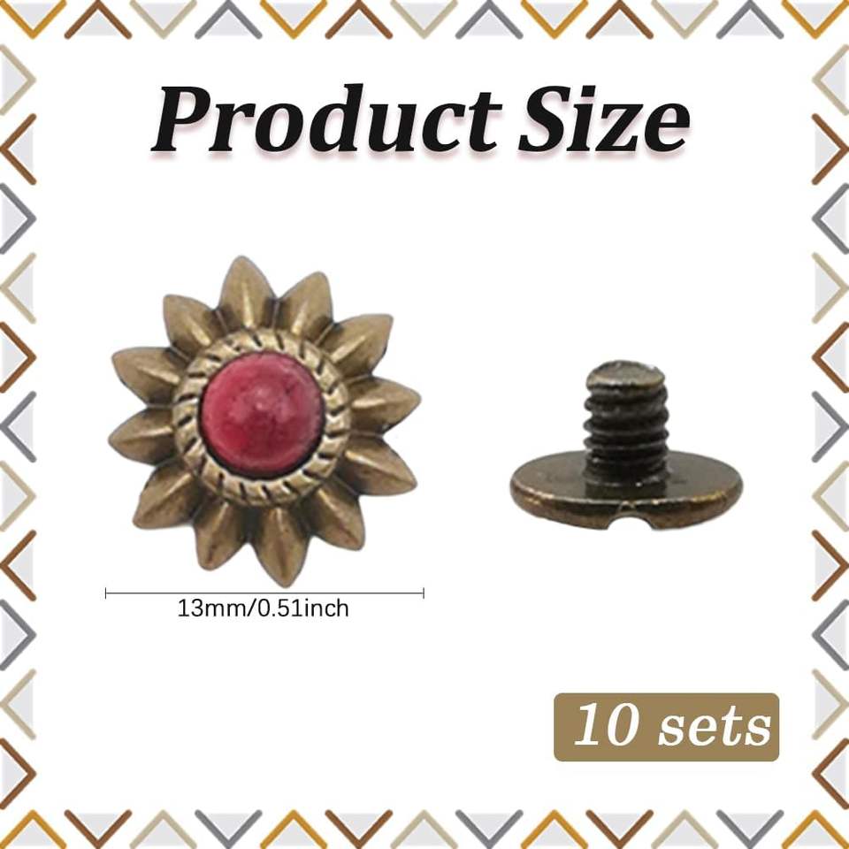 CABODYALS Pcs MM Remaches Decorativos de Cuero, Remaches Rojos con Tornillo, Botones Metálicos Retro en Forma de Girasol para Reparación de Maletas