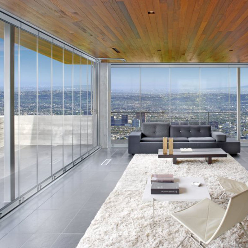 Puerta corredera sin marco impermeable de diseño CAD 3D para pérgola, acordeón plegable personalizado, marco estrecho, puerta corredera plegable sin marco