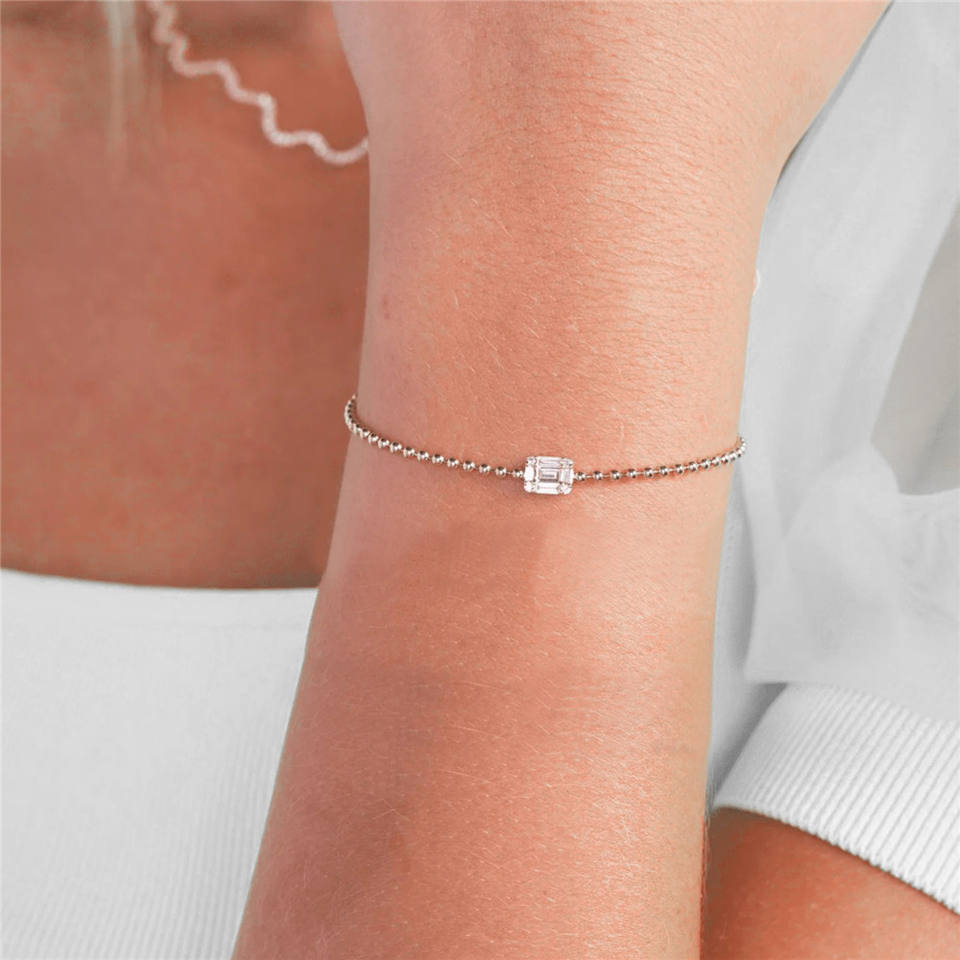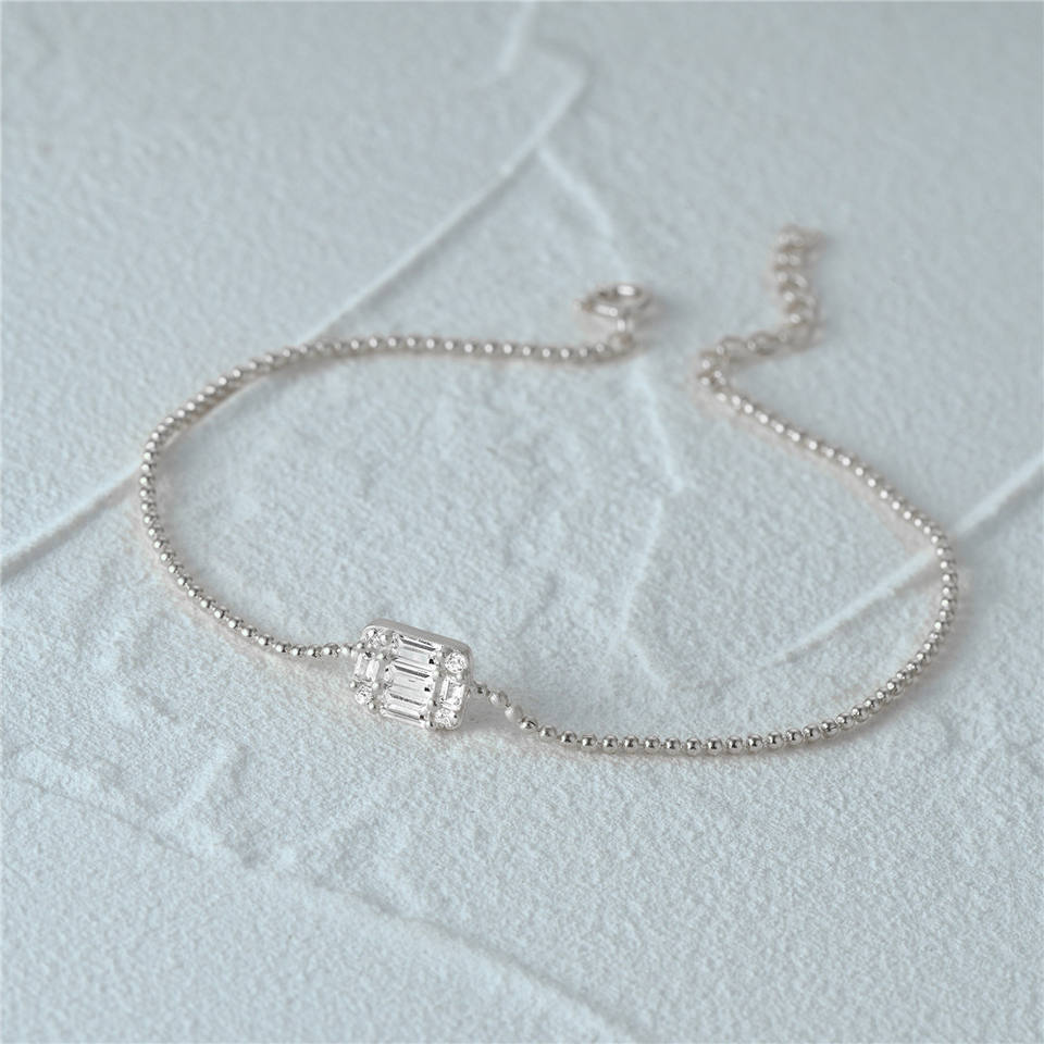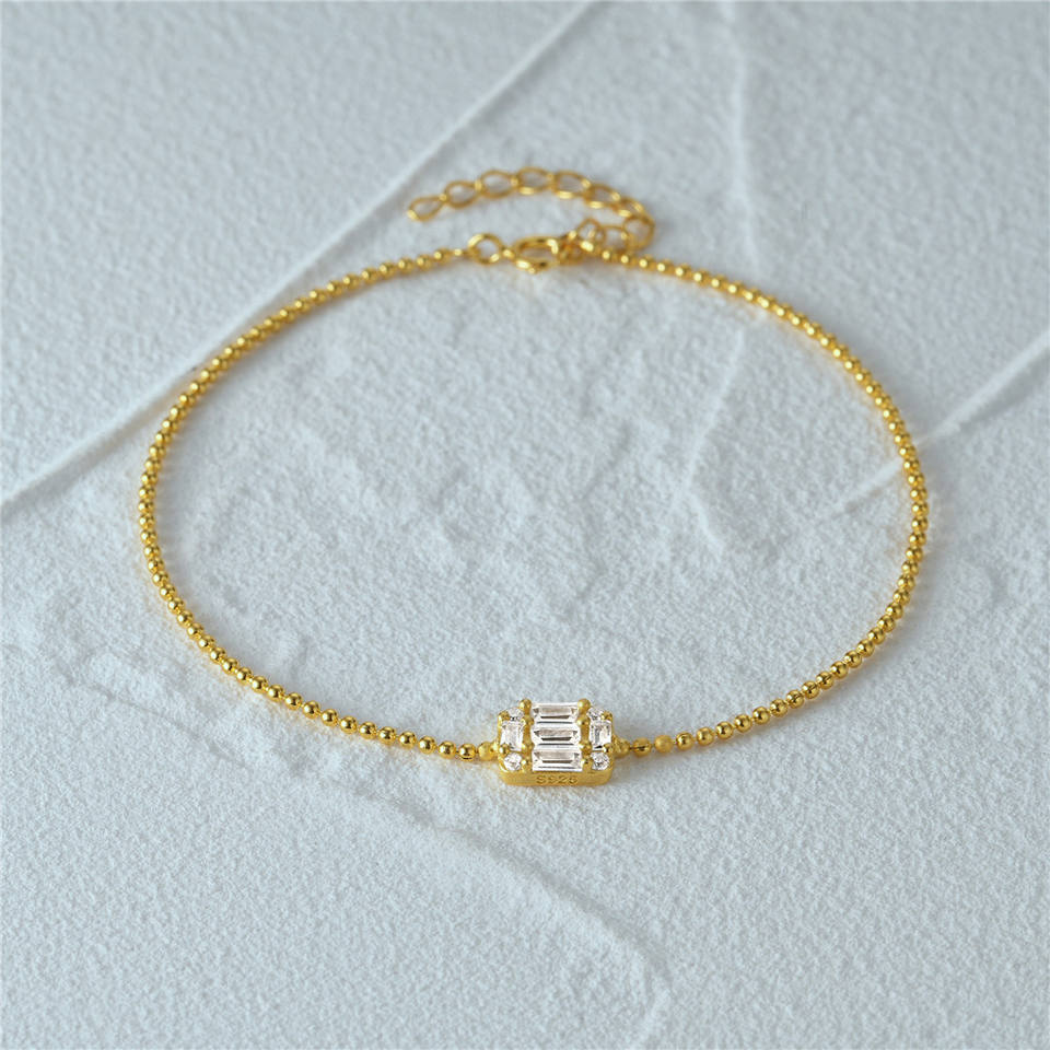 CANNER-Pulsera de circón de pan cuadrado de plata esterlina S925, cuentas redondas pequeñas, pulsera de cadena chapada en oro de 18K para mujer, joyería