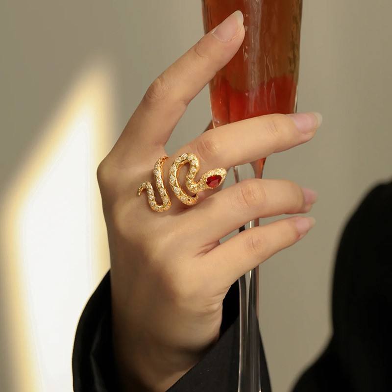 CAOSHI-Anillos abiertos con forma de serpiente para hombre y mujer, joyería de circonia cúbica chapada en oro de 18K, estilo Punk Animal, Hip Hop