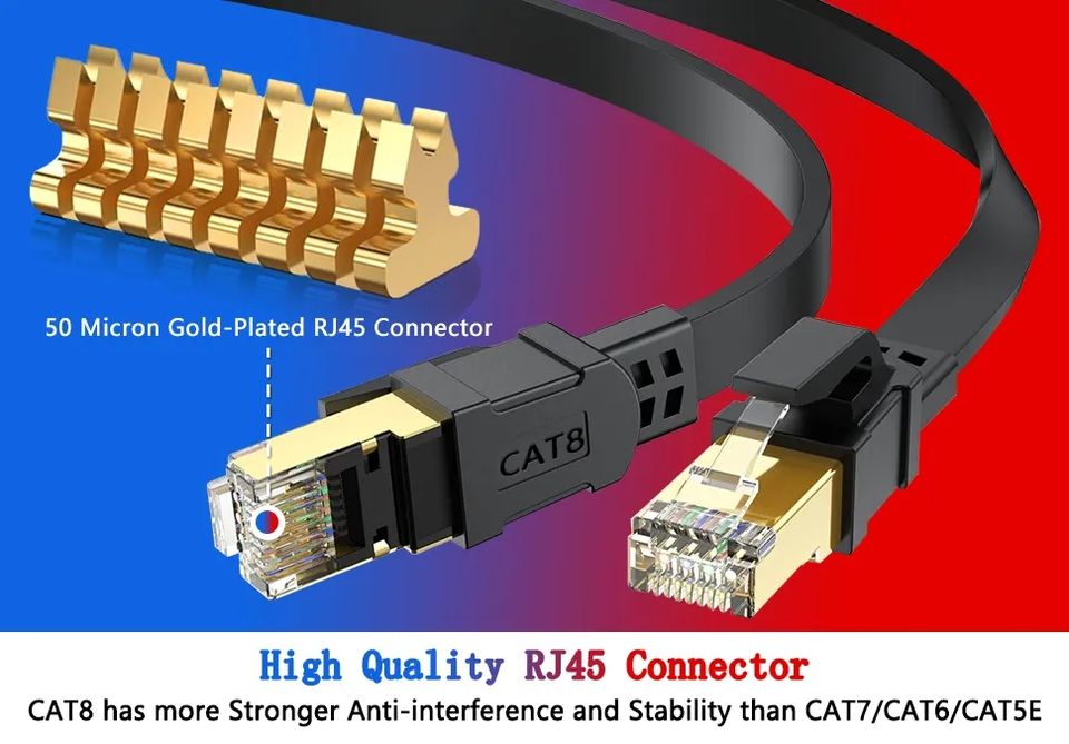 Cable Ethernet CAT8 40Gbps 2000MHz RJ45 10M 20M 30M Cable de conexión de Internet de red para módem Cable de enrutador Ethernet CAT 8