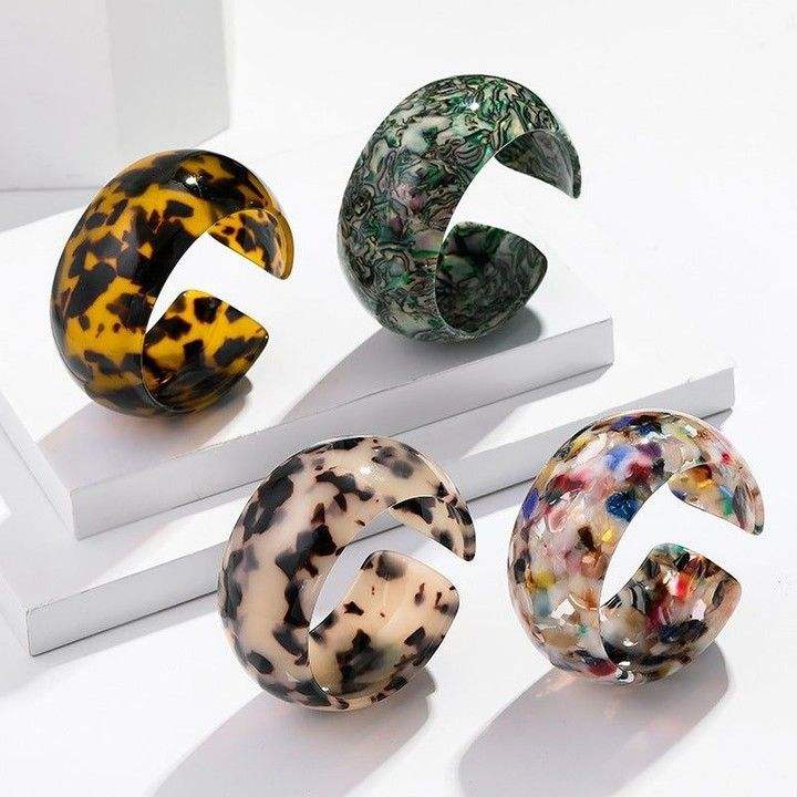 CATCHING Jewelry Resina Acrílico Pulsera Brazalete Exagerado Deslumbrante Multicolor Ancho Irregular Cuadrado Acrílico Pulseras para