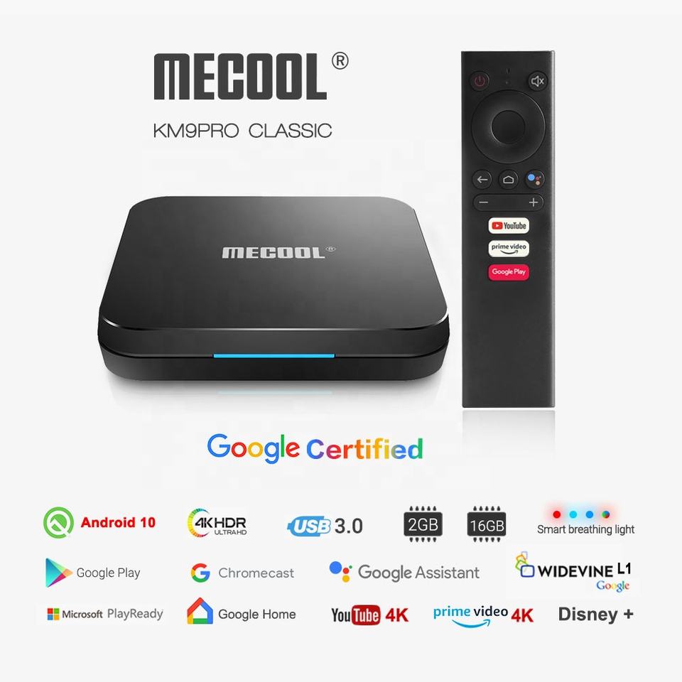 CATVSCOPE KM9 Pro Smart TV Box Android 10 certificada caja de IPTV 2GB 16GB primer Video de Youtube 4K Mecool