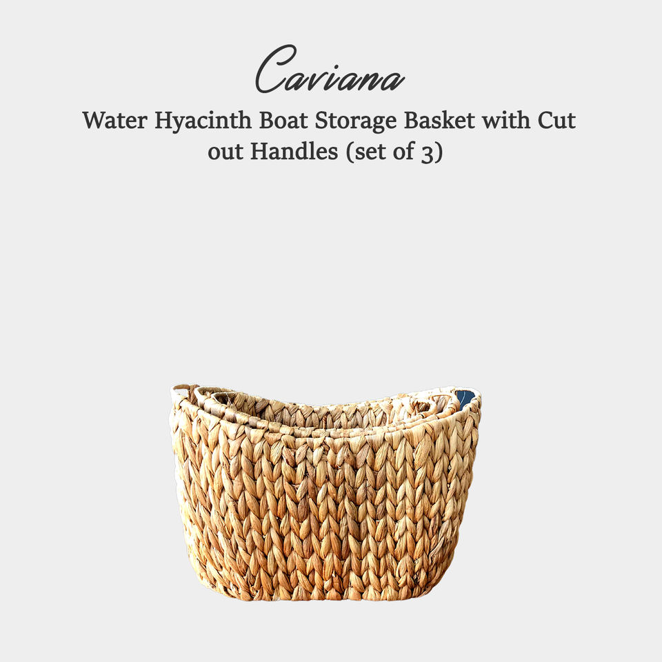CAVIANA Juego de 3 Cestas de Almacenamiento de Jacinto de Agua 100% Ecológicas de Diseño Moderno con Asas Recortadas para Lavandería y Uso Doméstico
