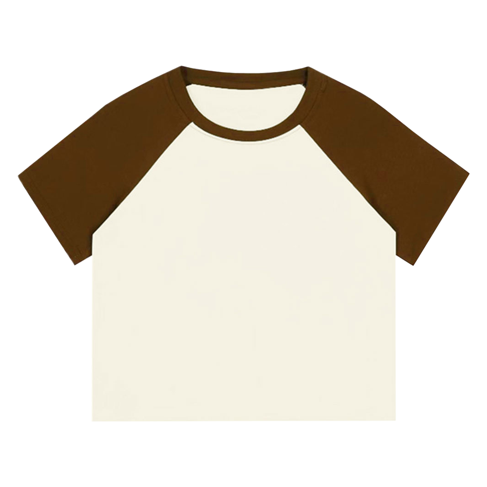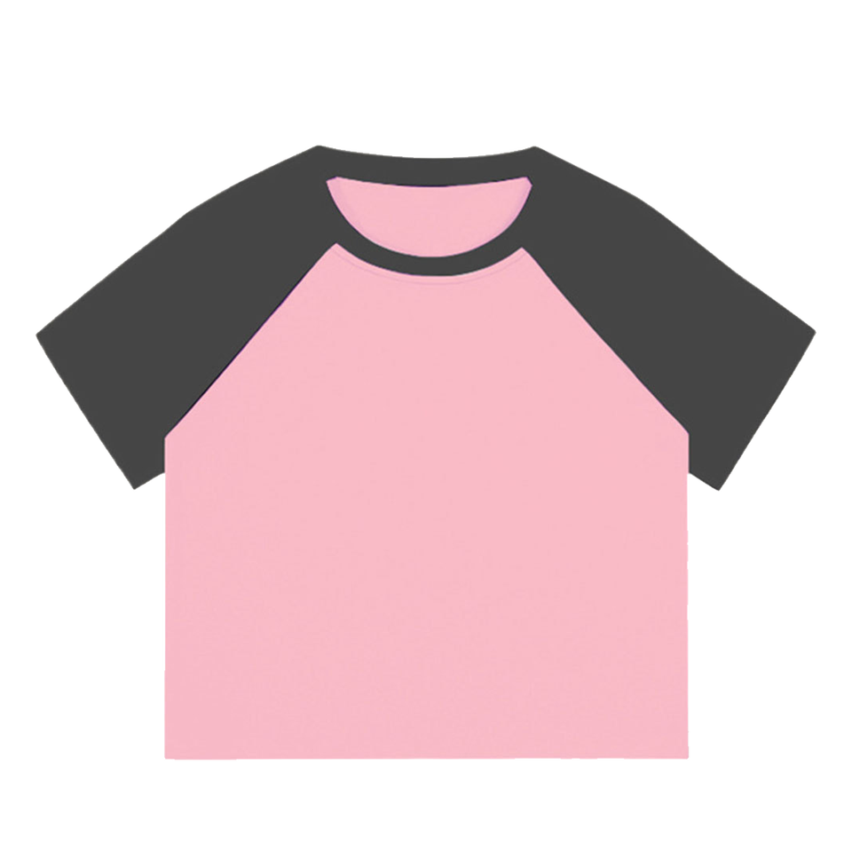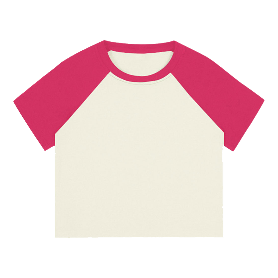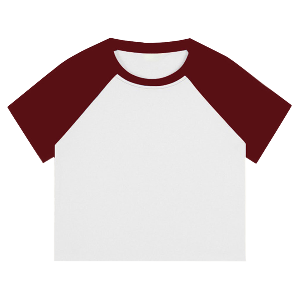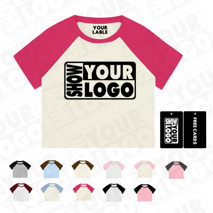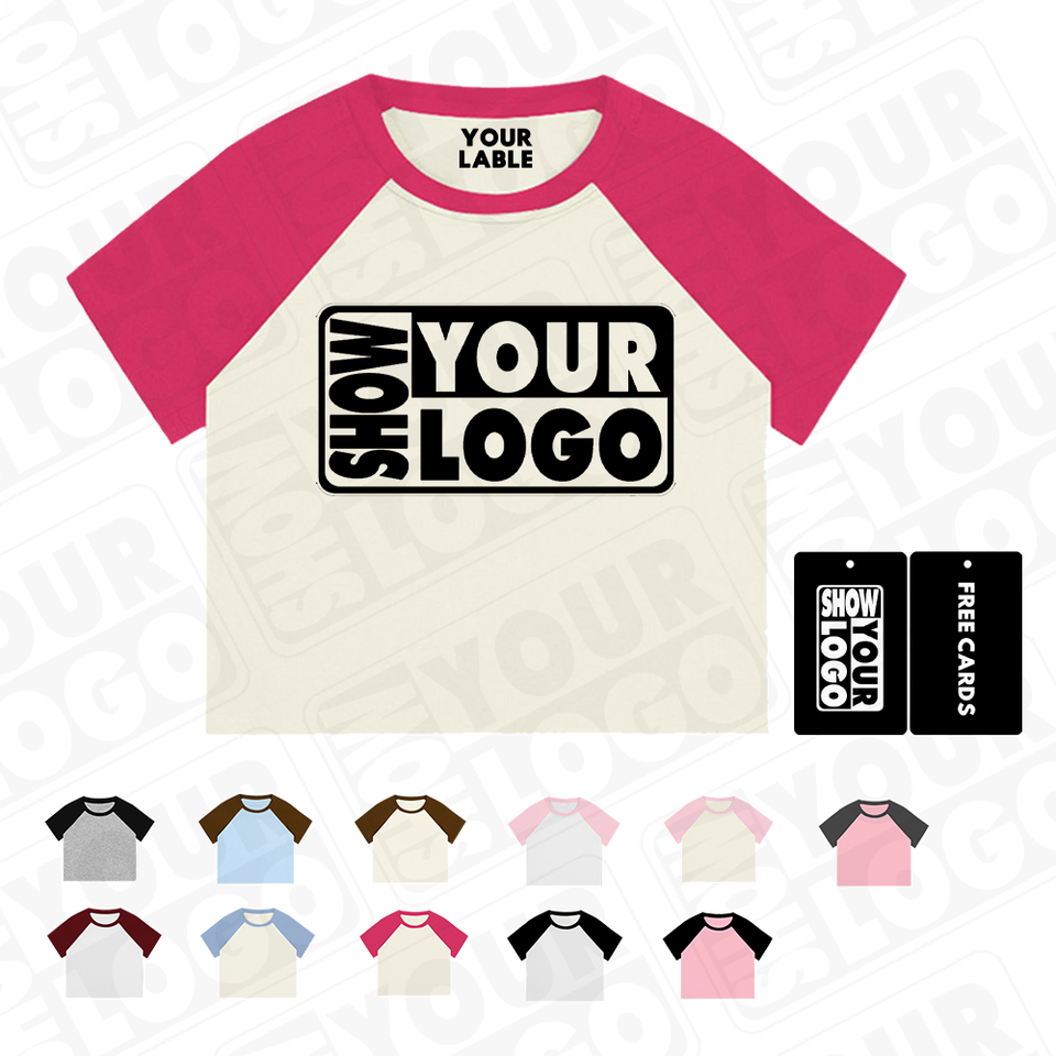 CB117-QLRL Ropa Urbana Personalizada con Estampado Gráfico para Mujer, Top Corto de Color Sólido con Mangas Raglán