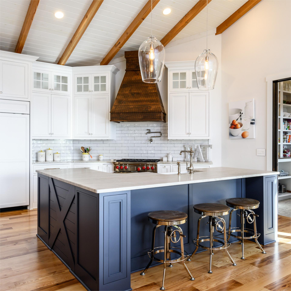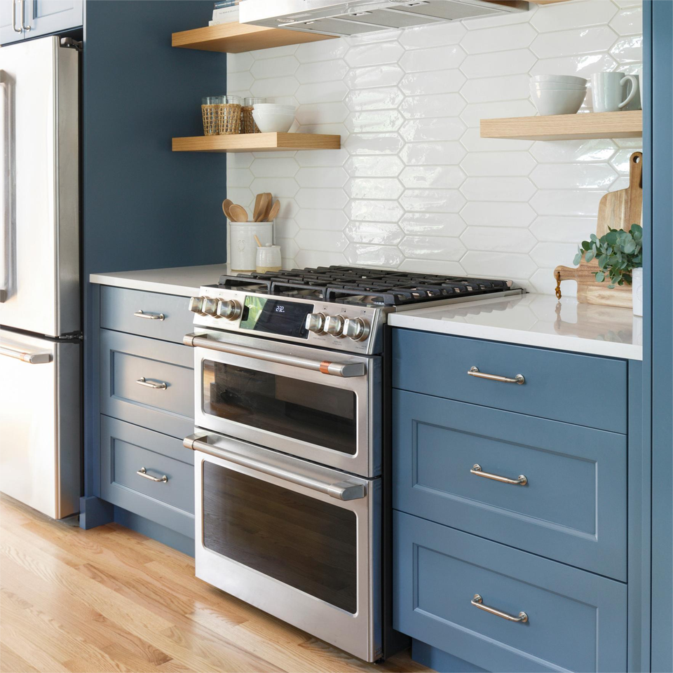 CBMmart diseños modulares personalizados incluidos CAD dibujo madera azul Shaker gabinetes de cocina con gabinete de bebidas