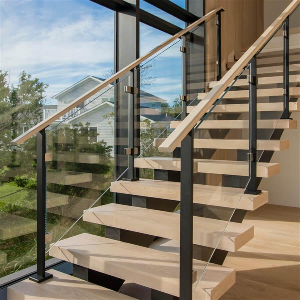 Acero al carbono + madera maciza + Vidrio TempladoMaterial de la escalera