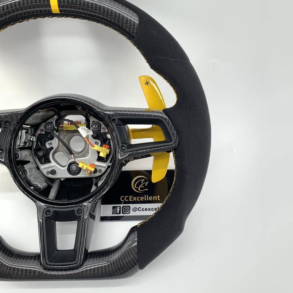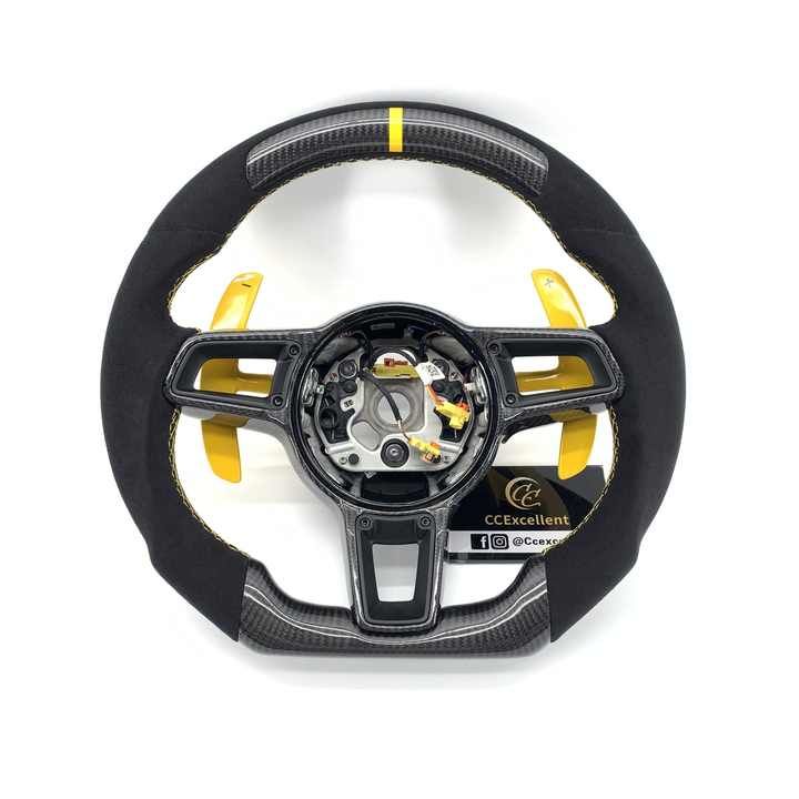 CCExcellent - Embellecedor de Volante Personalizado de Fibra de Carbono Real para Porsche 991.2 911 918 992 718 Boxster Macan Panamera 2017+